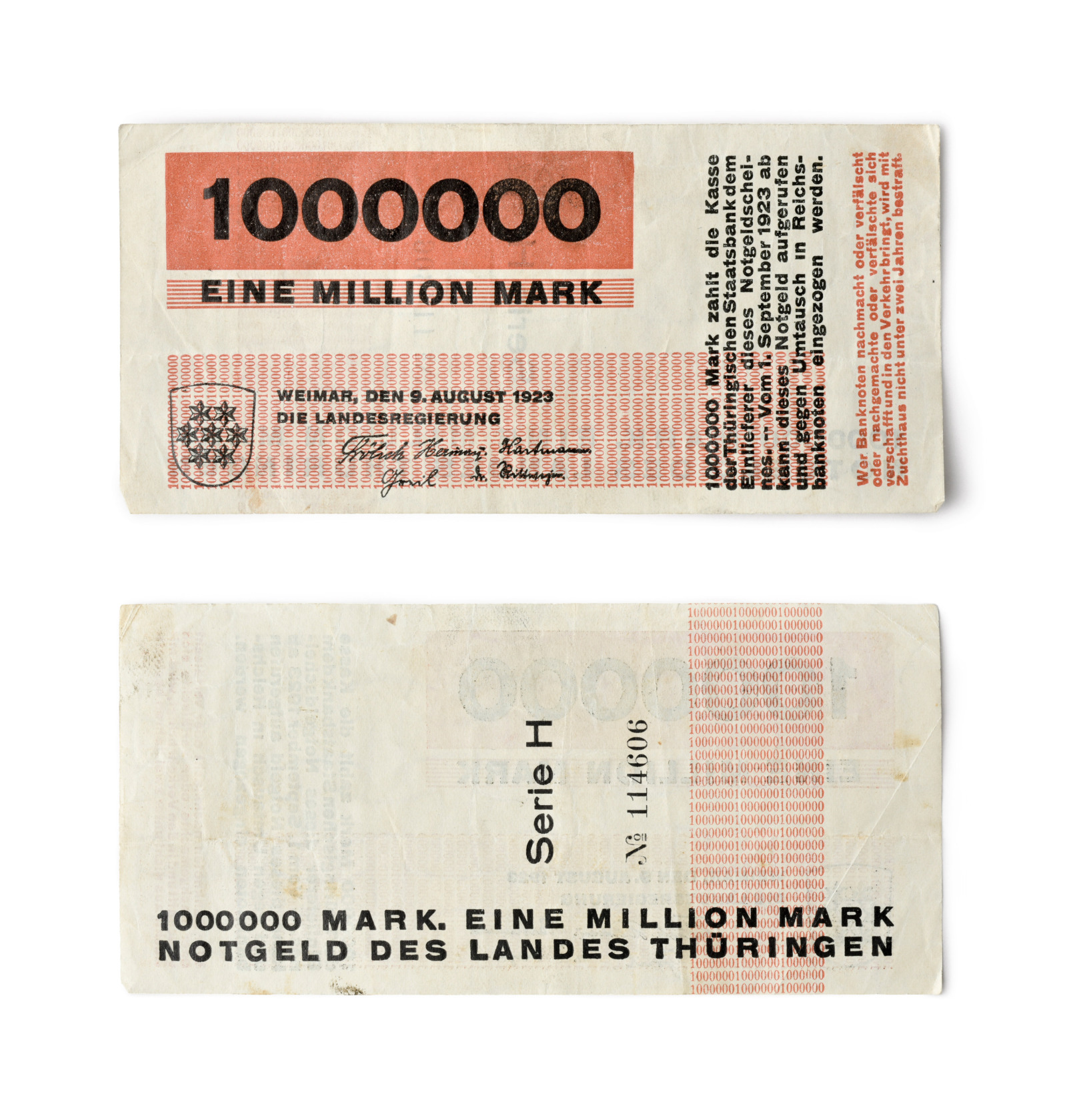The hyperinflation as one of the most radical devaluations of money in Germany had peaked at that point. The painter, typographer and then Bauhaus young master quickly completed a concept for the supraregional emergency money of the state of Thuringia.