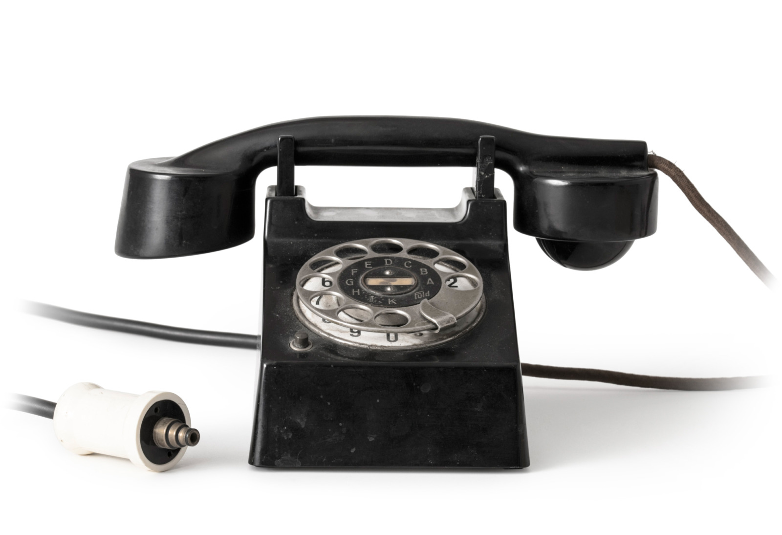 This version with black bakelite handset and textile cable was produced until the 1930s and then continued by variants with differently shaped handsets and plastic elements.